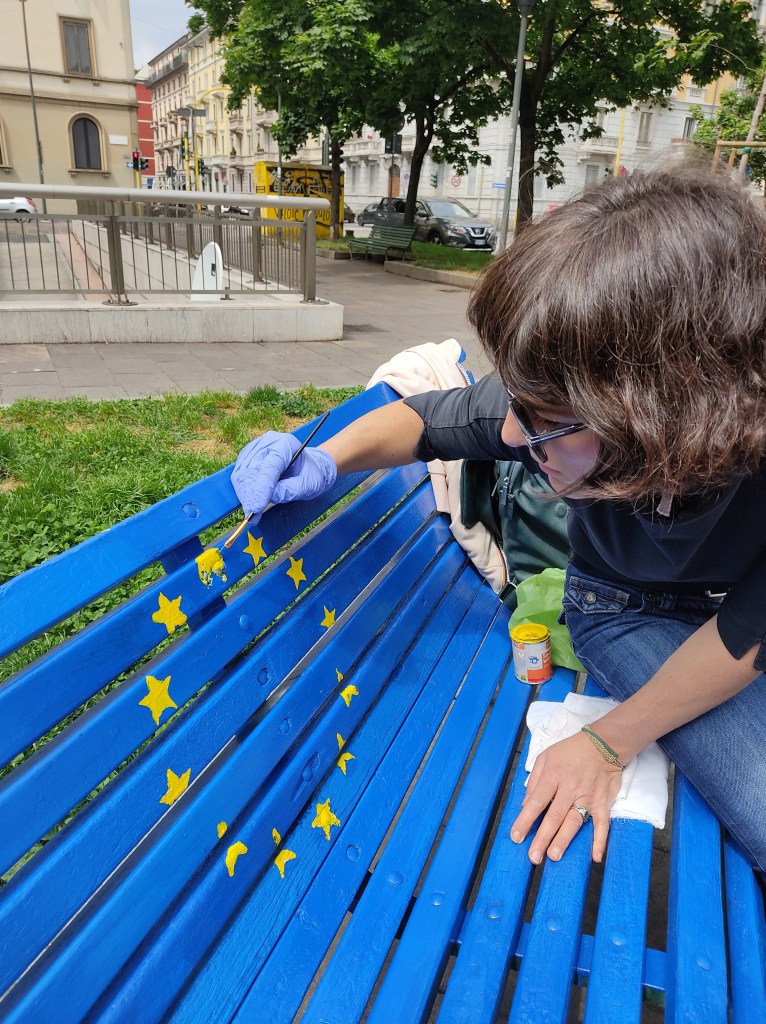 Cristina Maranesi è l’ideatrice e narratrice virtuale del progetto Panchina Europea. Le panchine vengono realizzate in collaborazione con associazioni territoriali, partiti politici e amministratori locali, grazie al contributo di un gruppo attivo di giovani e meno giovani: Andrea, Alessandro, Lorenzo, Gaia, Serena, Marinella, Angelica, Alice, Paolo, Emanuele, Adriana, Matilde e tutti gli altri che si aggiungono giorno dopo giorno.